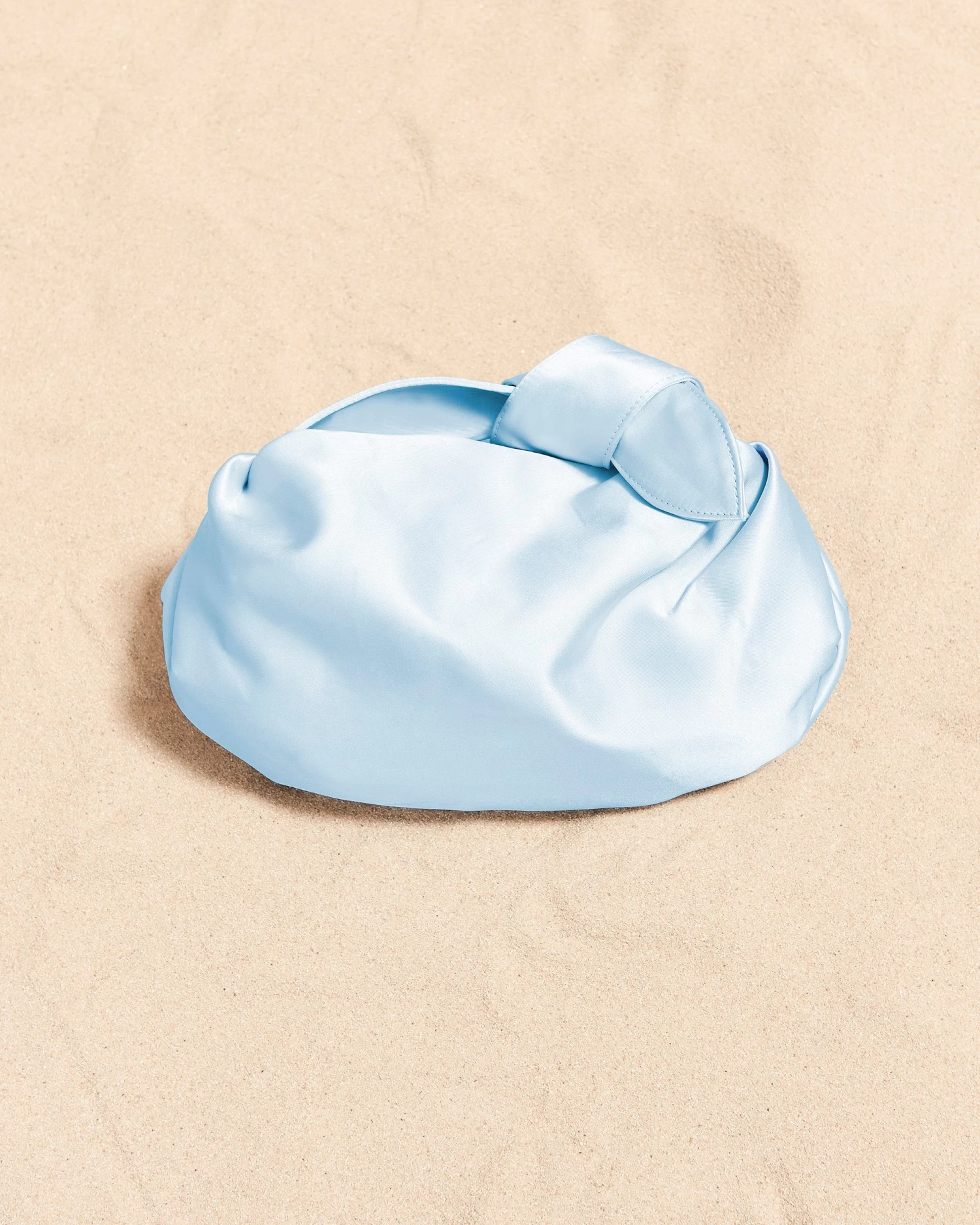 Bolso de mano con detalle de nudo en el asa y cierre mediante botón.