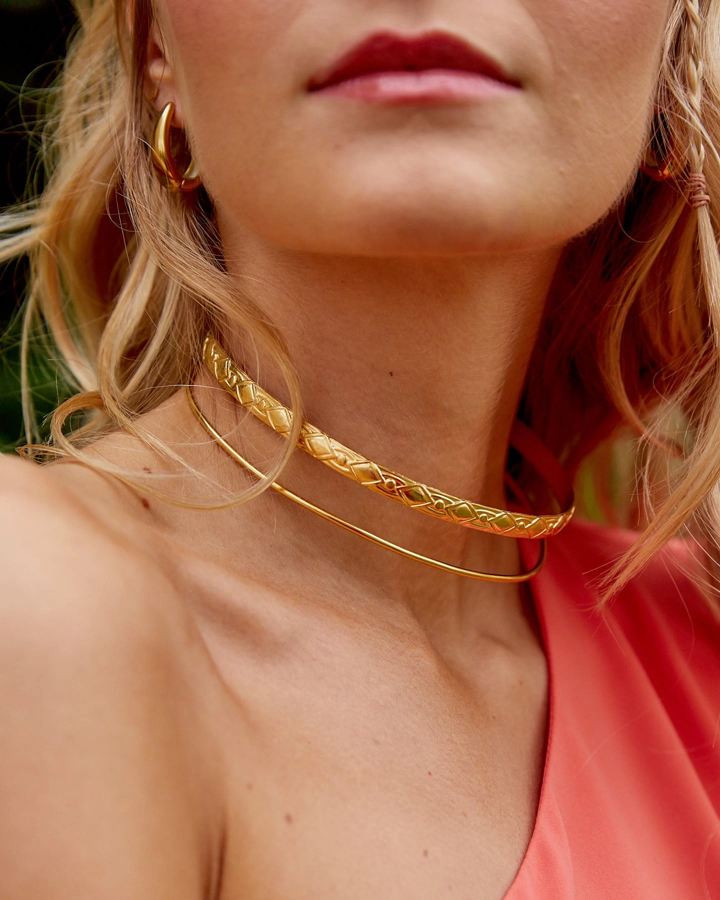Choker de doble aro realizado a mano en latón y bañado en oro de 18K. Uno de los aros está labrado.