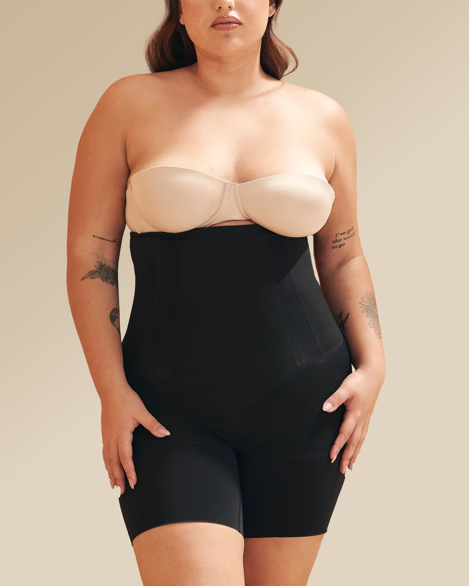 Faja pantalón de mujer de talle alto con efecto reductor y sin costuras. Paneles de compresión en la zona del abdomen y laterales para moldear tu cuerpo manteniendo la facilidad de movimiento. Tejido suave al tacto.