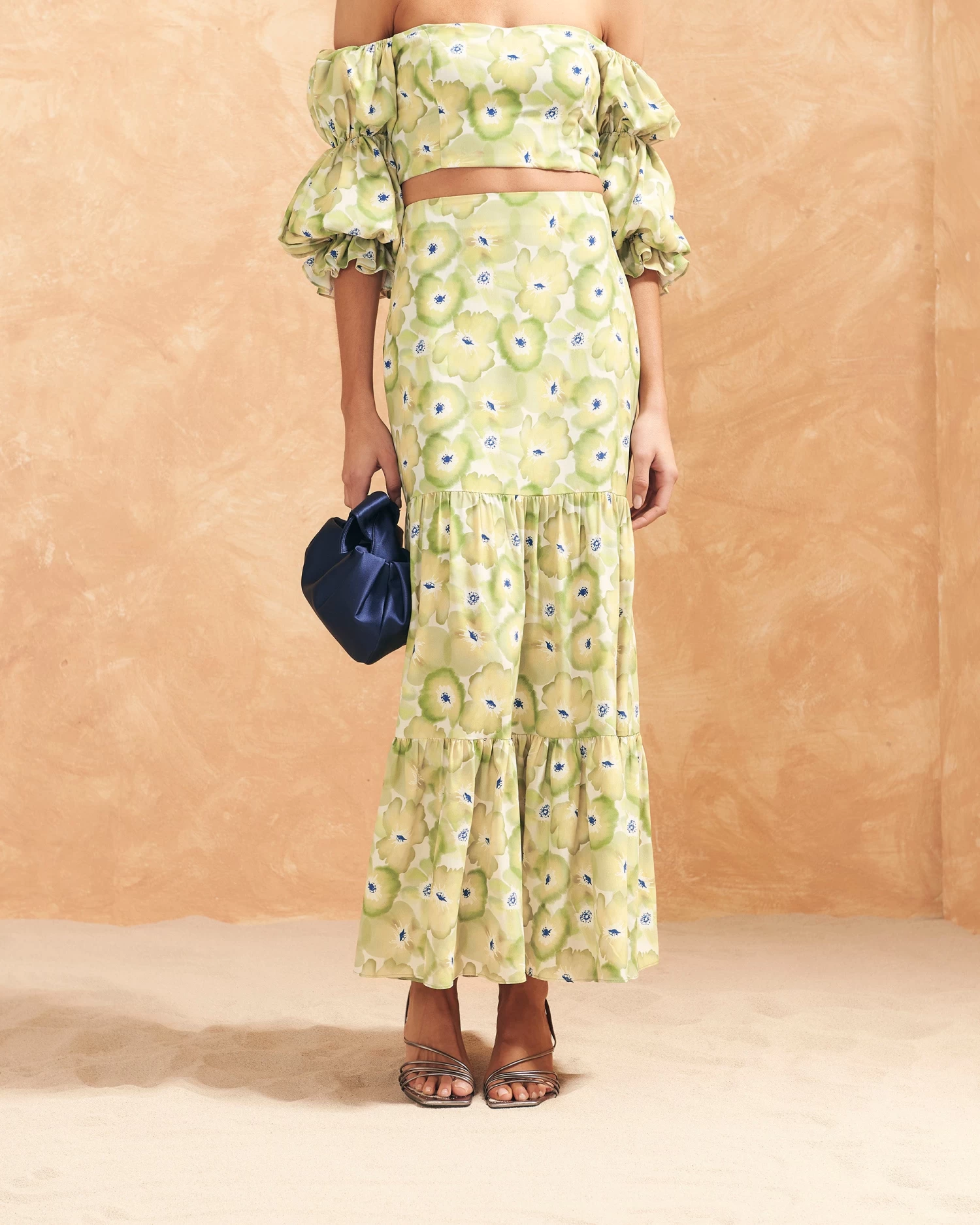 Falda midi con doble volante en el bajo.