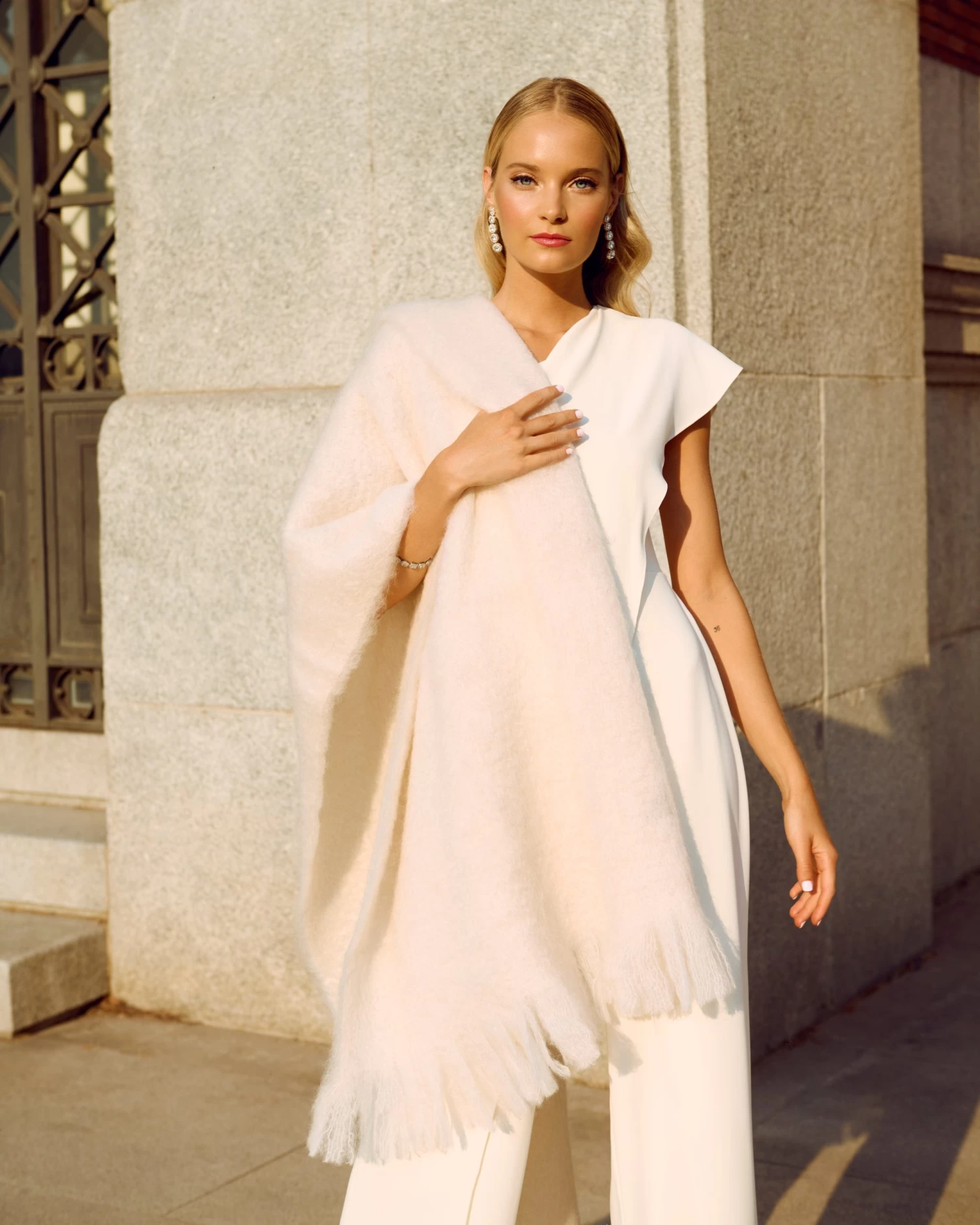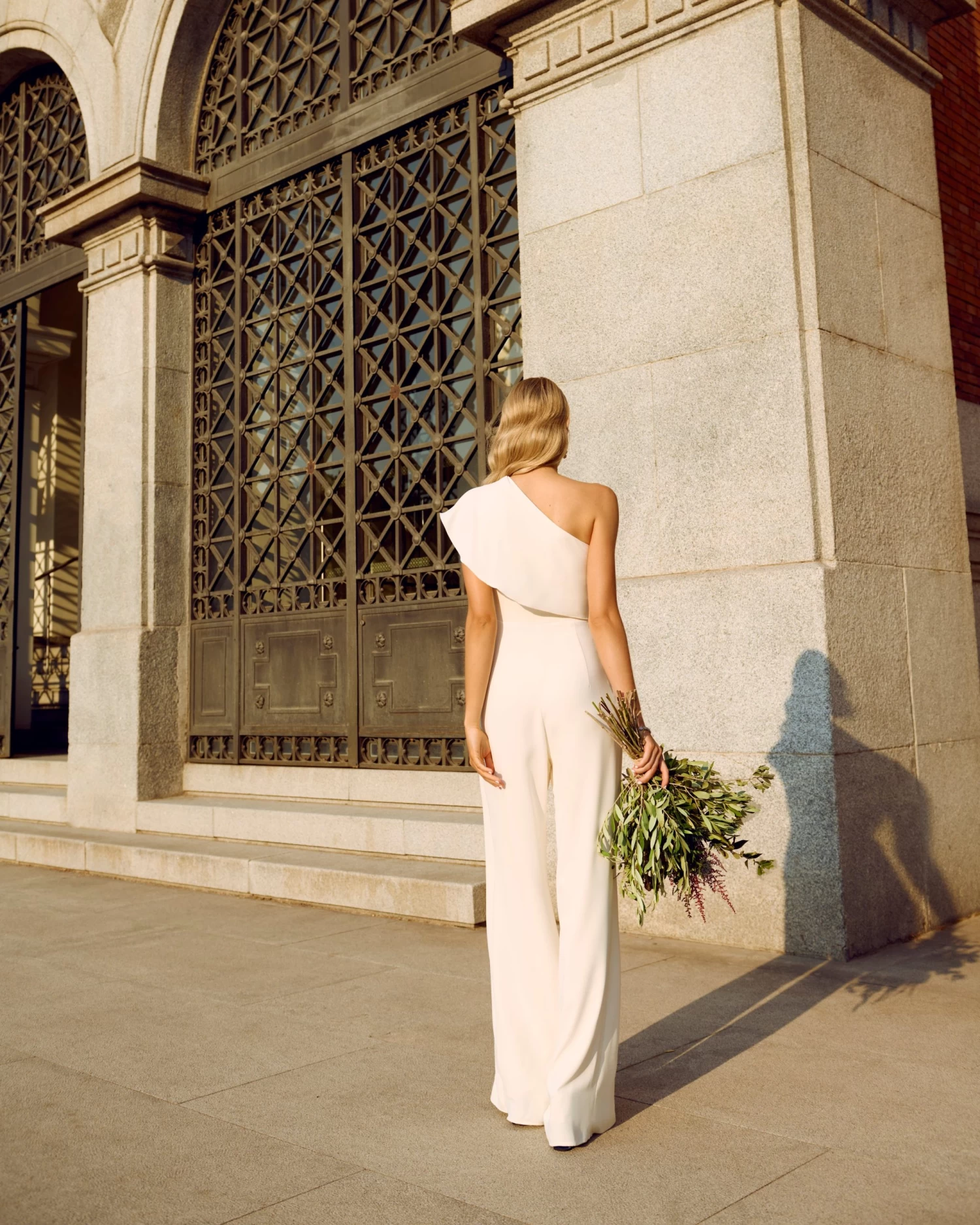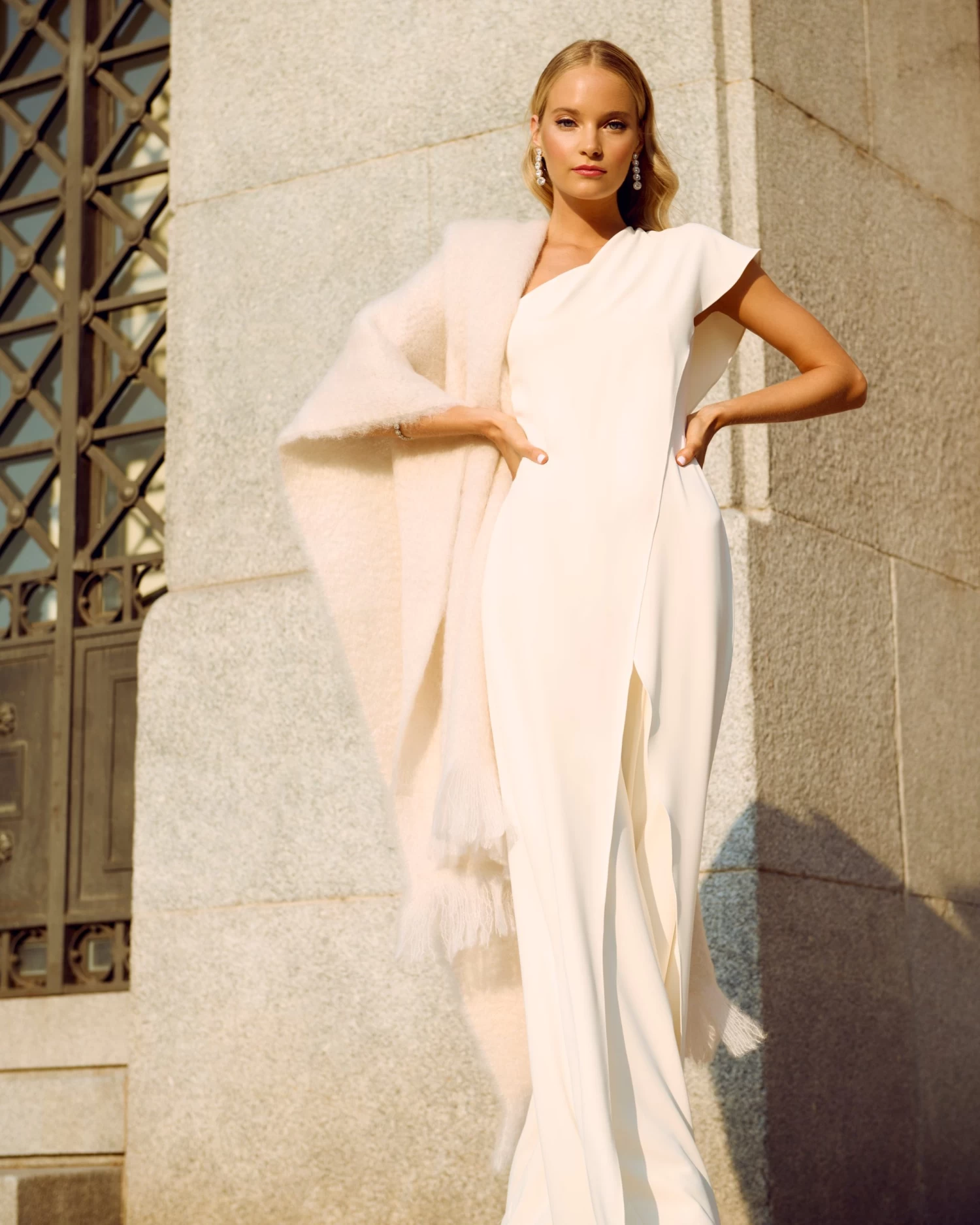 Mono largo asimétrico con capa delantera y cremallera lateral.