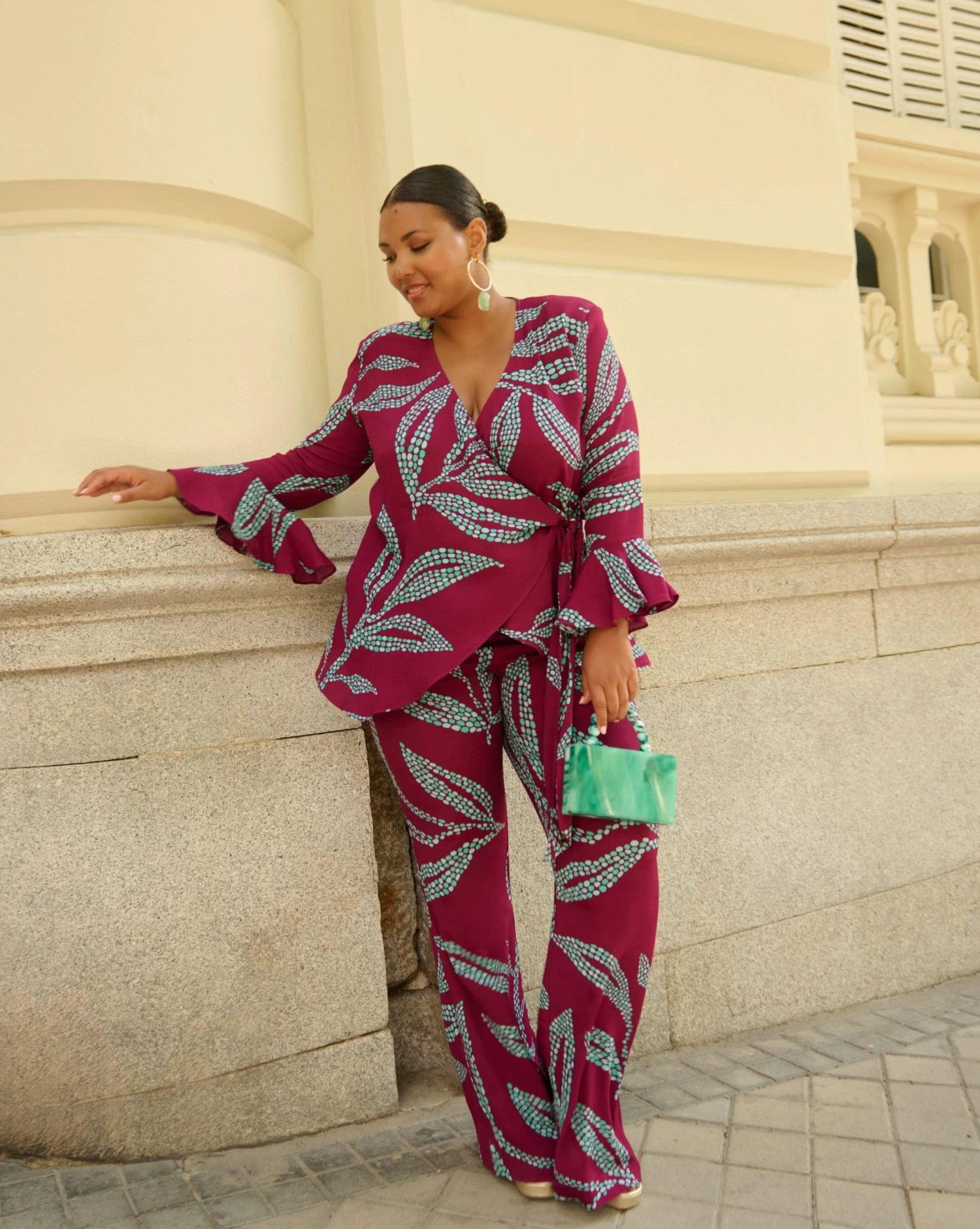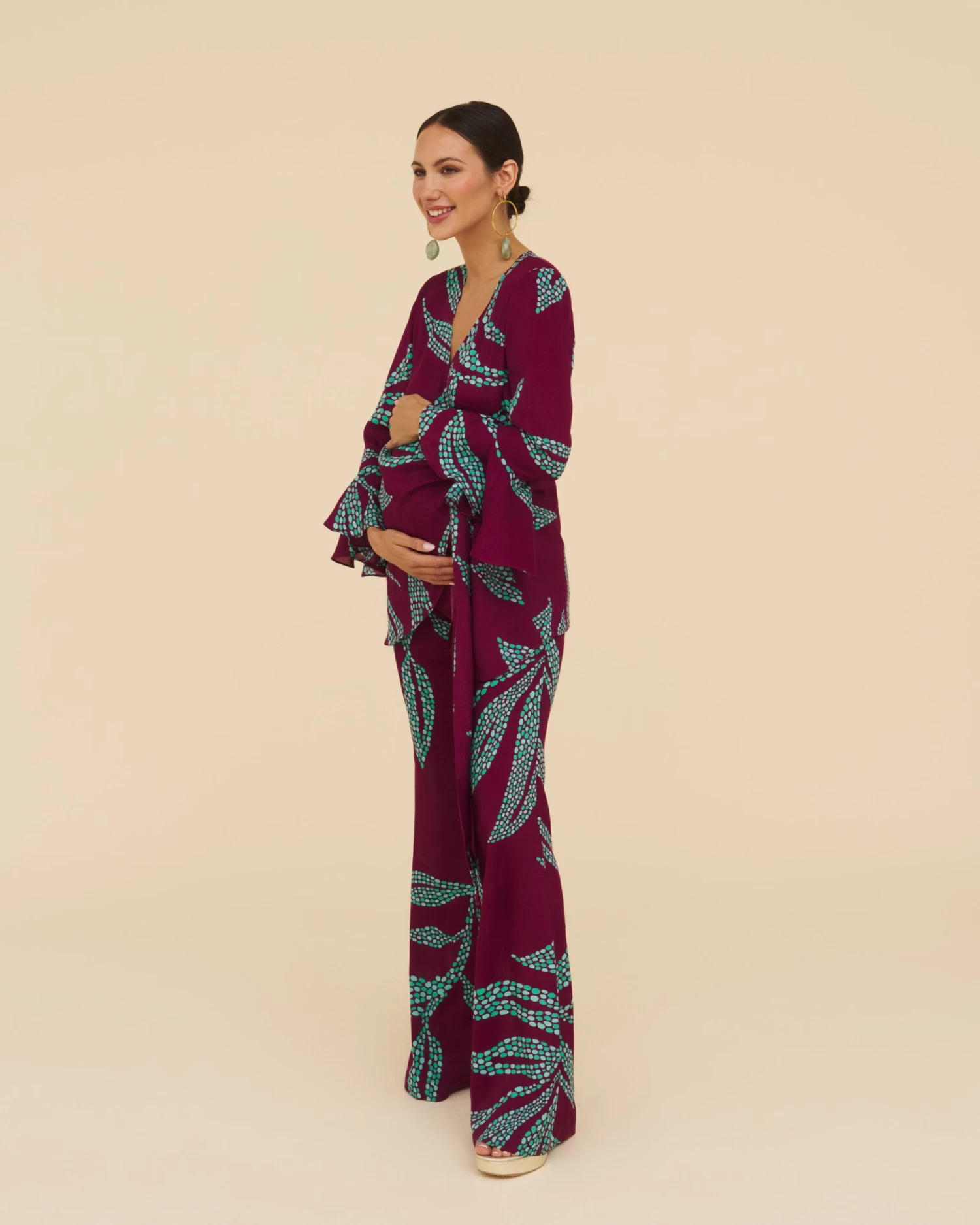 La primera modelo mide 173 cm y lleva la talla XS. La segunda modelo mide 170 cm y lleva la talla XS. La tercera modelo mide 176 cm y lleva la talla 4XL. La cuarta modelo (embarazada) mide 166 cm y lleva la talla XS.