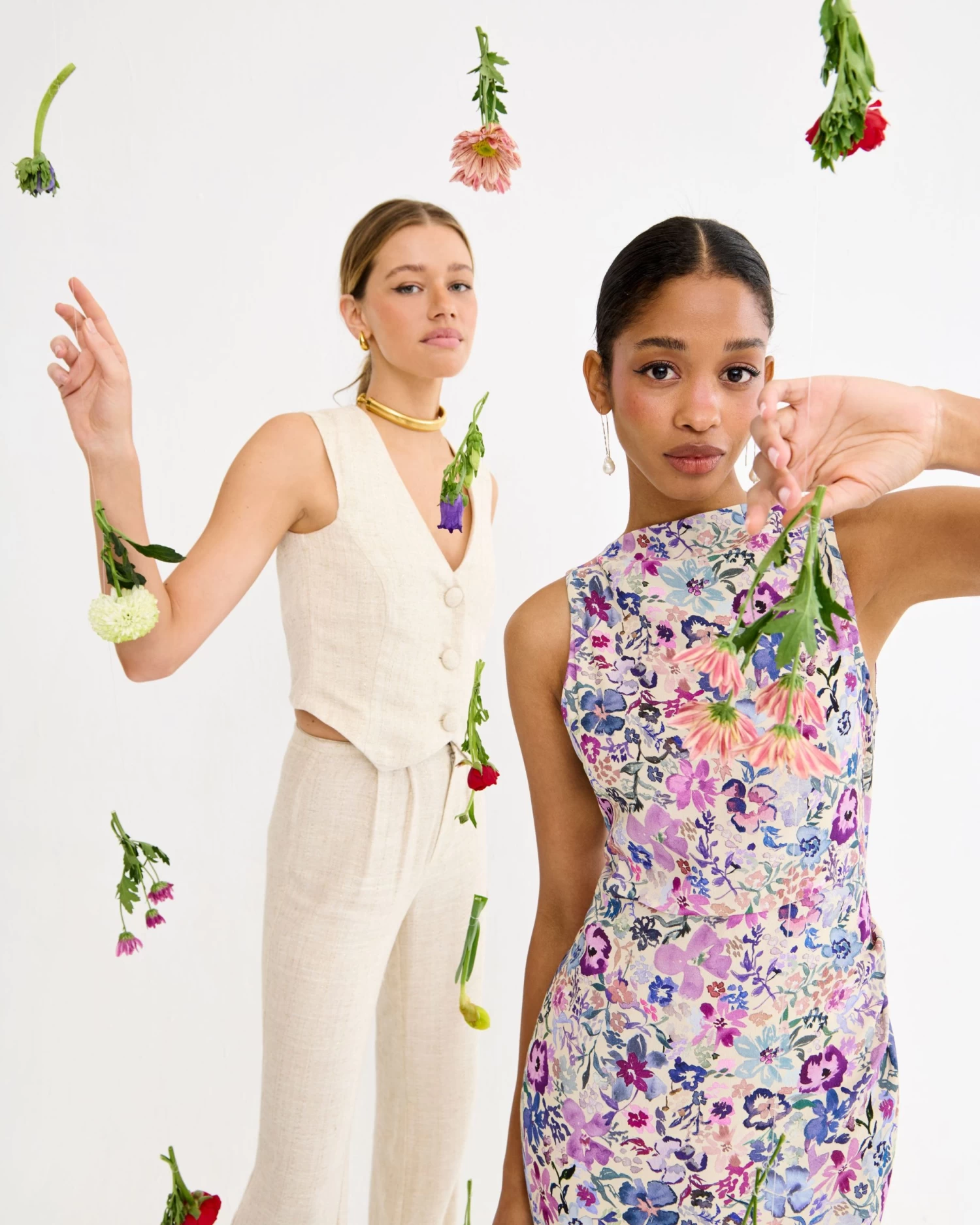 La primera modelo mide 162 cm y lleva la talla XS. La segunda modelo mide 176 cm y lleva la talla XS.