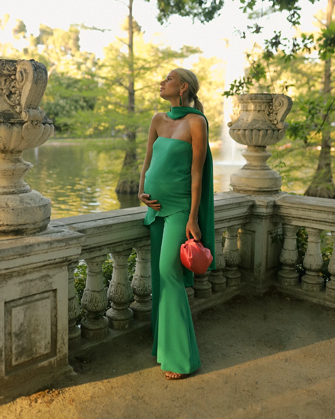 La primera modelo mide 168 cm y lleva la talla XS. La segunda modelo mide 170 cm y lleva la talla XS. La tercera modelo (embarazada) mide 175 cm y lleva la talla XS.