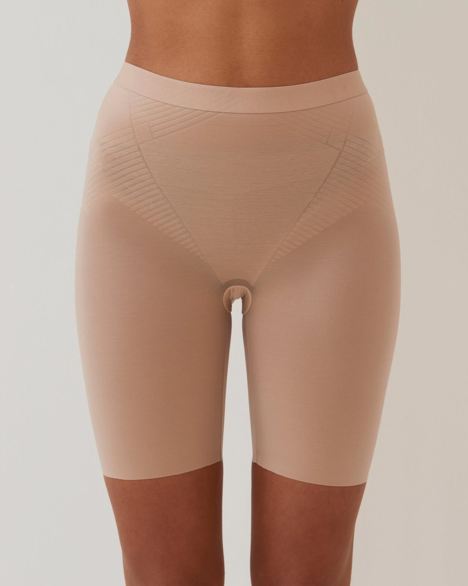 Short de mujer moldeador con efecto reductor. Tejido de microfibra sin costuras para que no se marque nada bajo la ropa. Paneles de compresión en el abdomen, la cintura, los muslos y los glúteos.