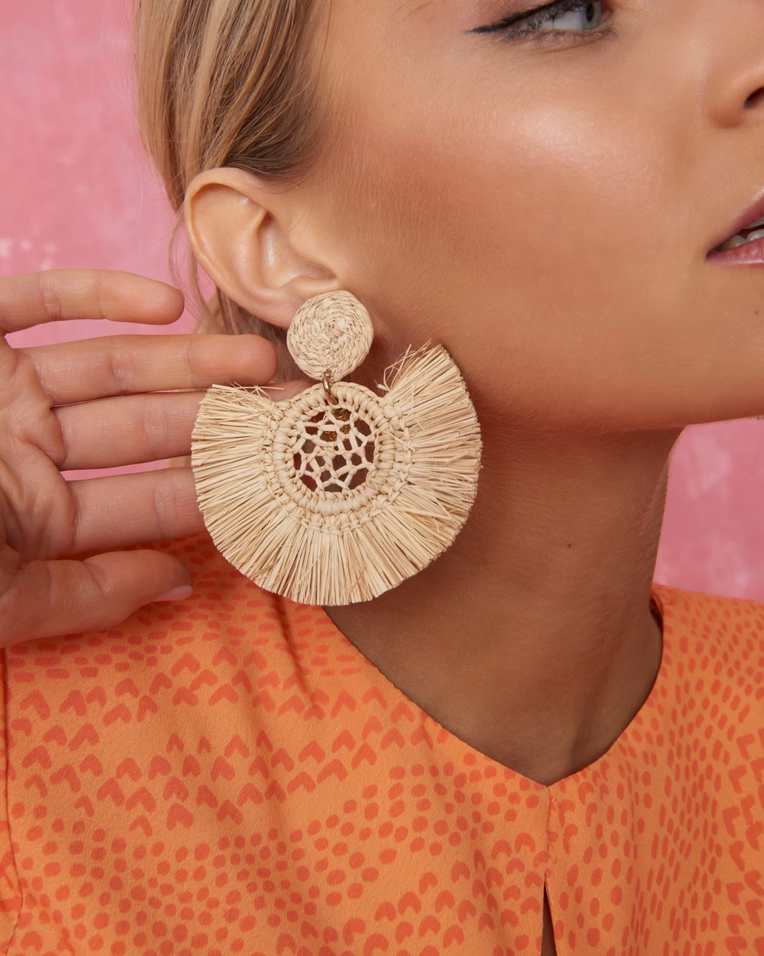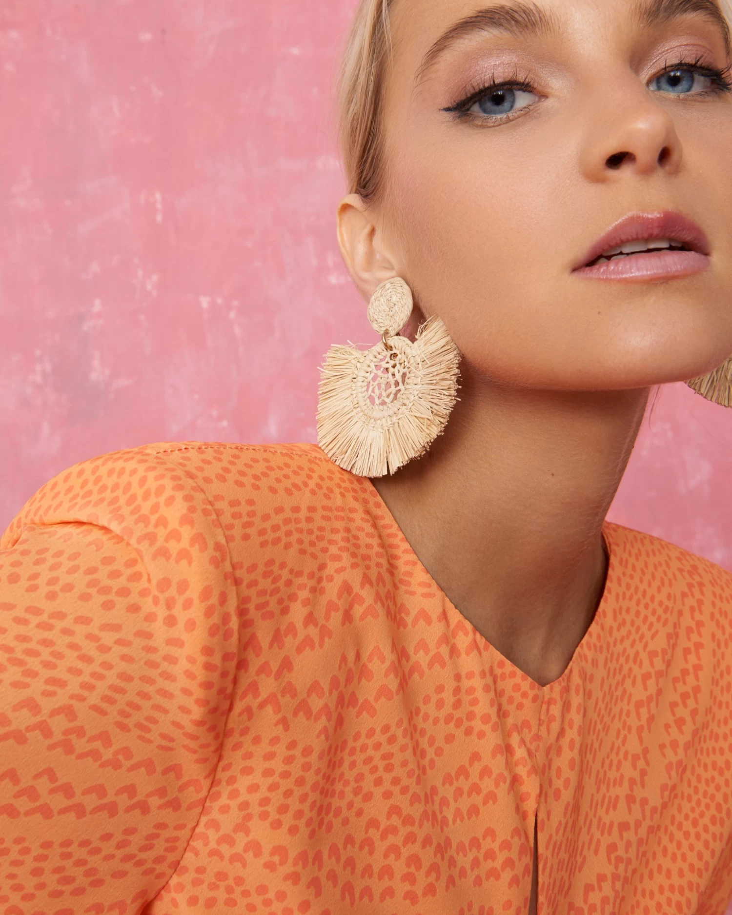 Pendientes circulares realizados artesanalmente 100% a mano con la técnica del bordado de rafia.