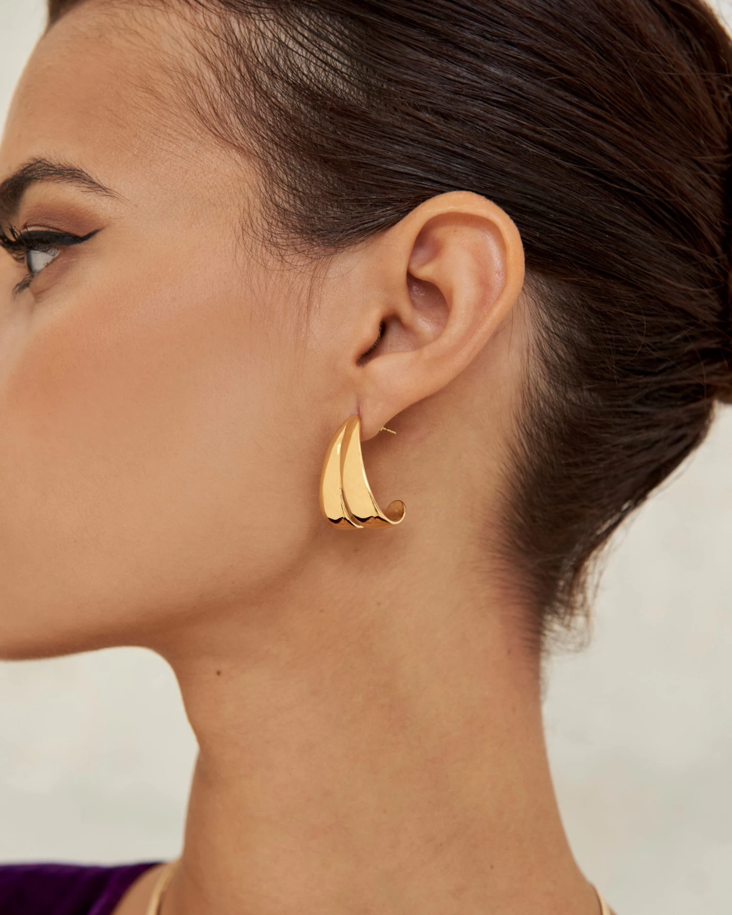Pendientes dorados con doble aro. Cierre de silicona cilíndrico.