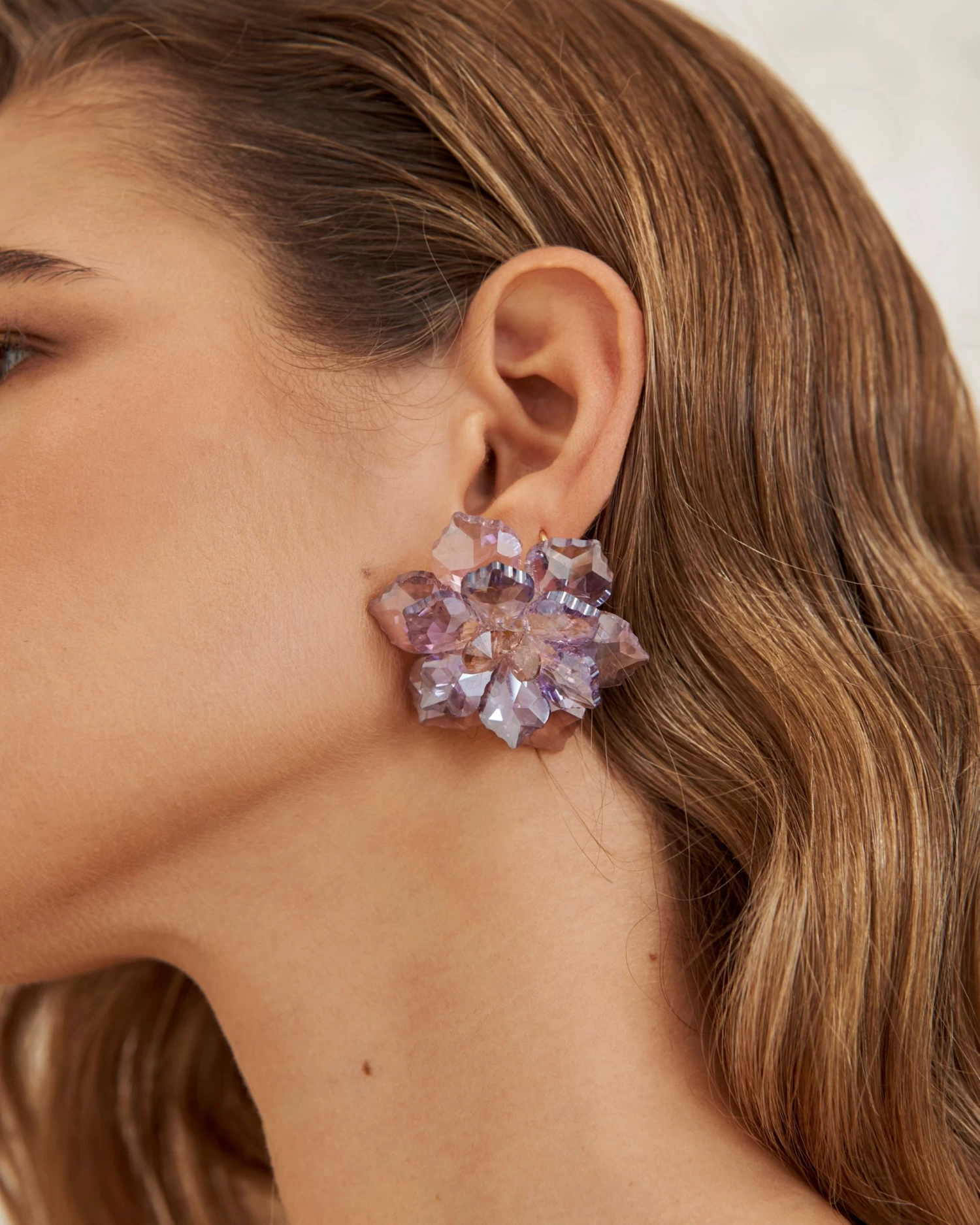 Pendientes de cristal con forma de flor. Cierre de latón con rosca.