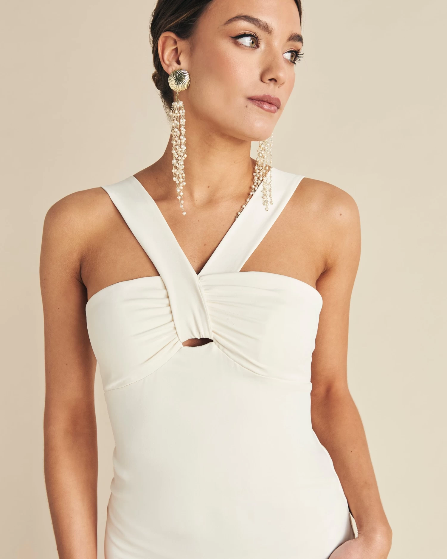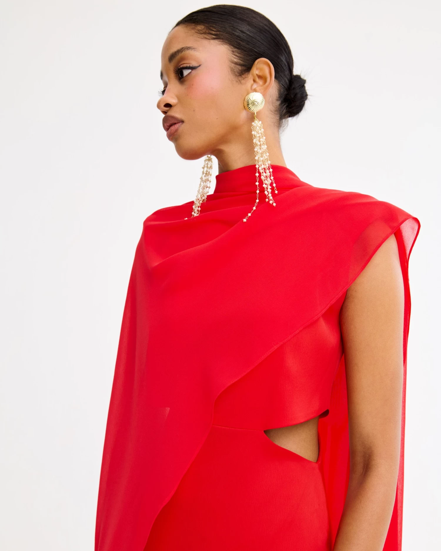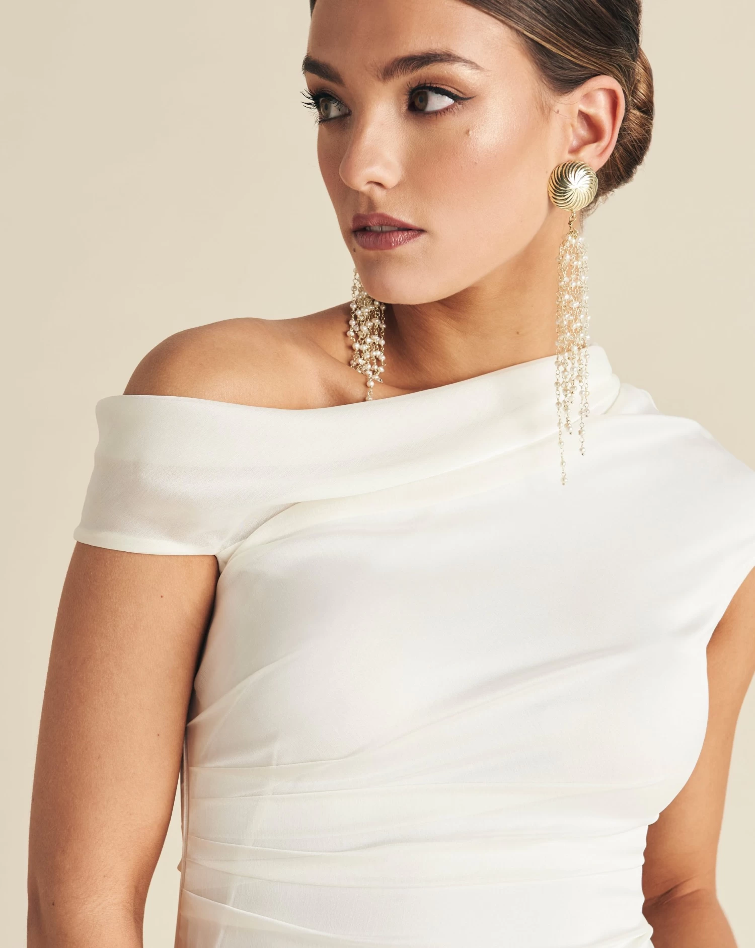 Pendientes con botón dorado y colgantes en cascada con pepitas de cristal. Cierre con clip.