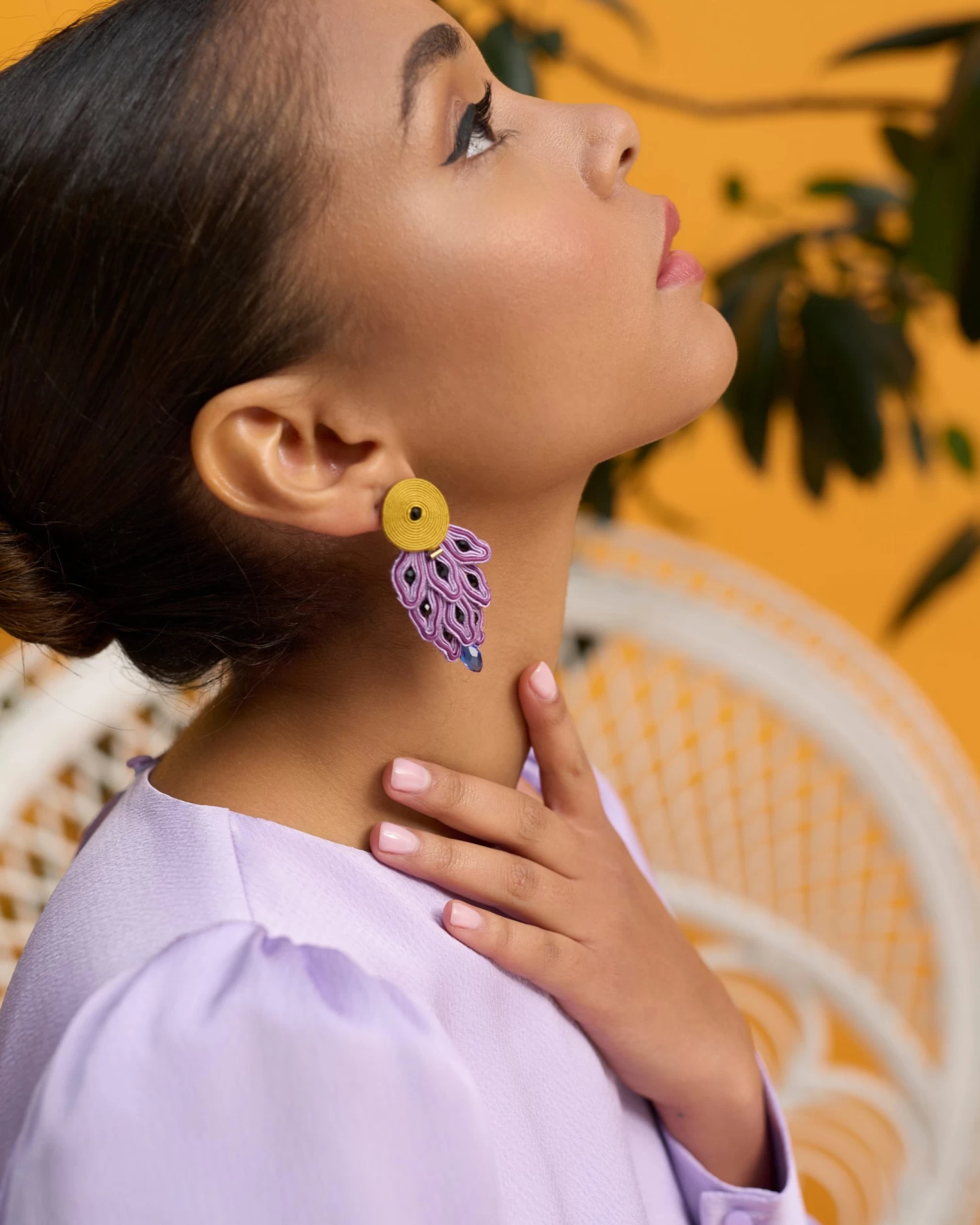 Pendientes cosidos a mano siguiendo la técnica soutache.