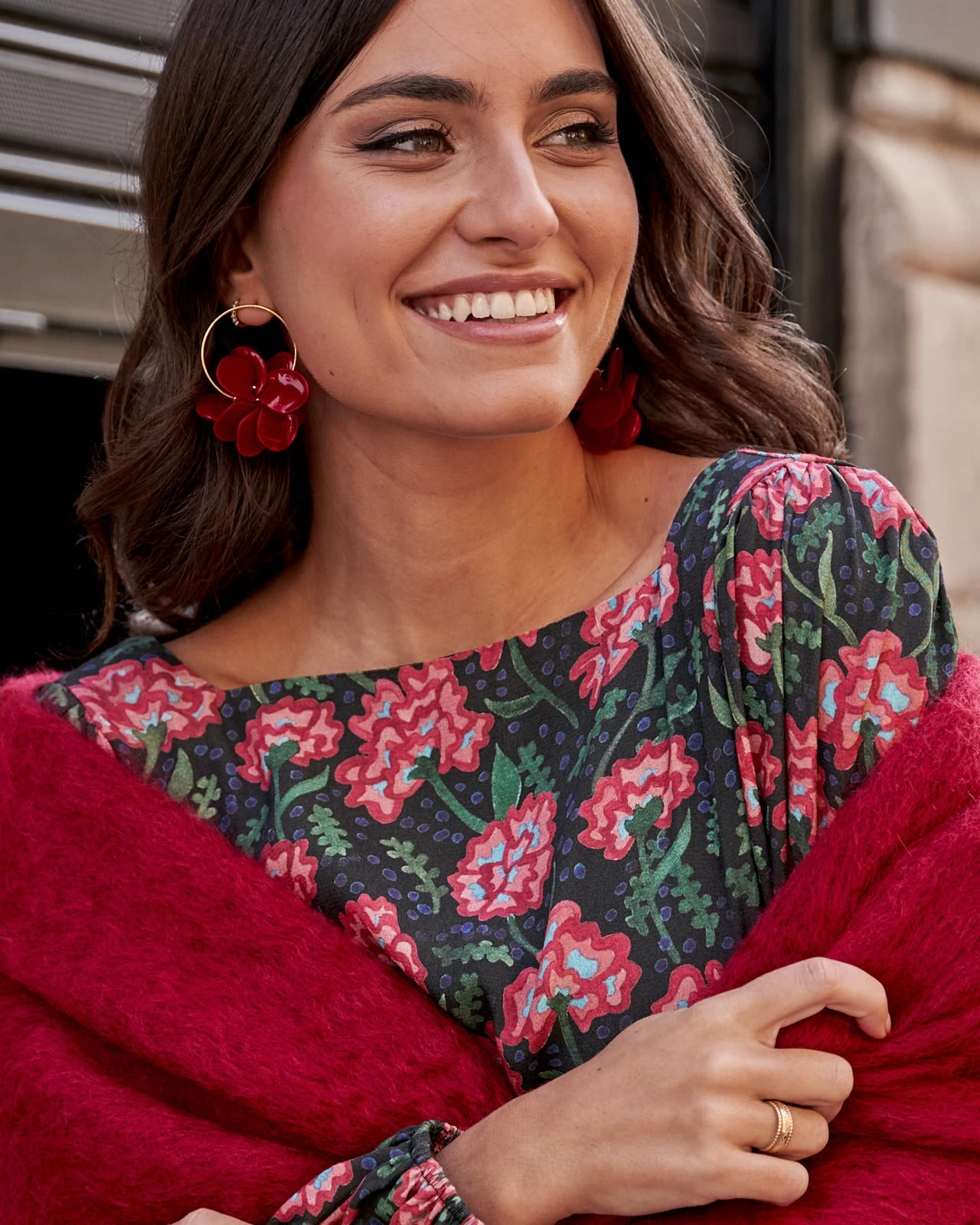 Pendientes de pétalos de metacrilato muy ligeros colgados sobre aro con cierre incorporado.