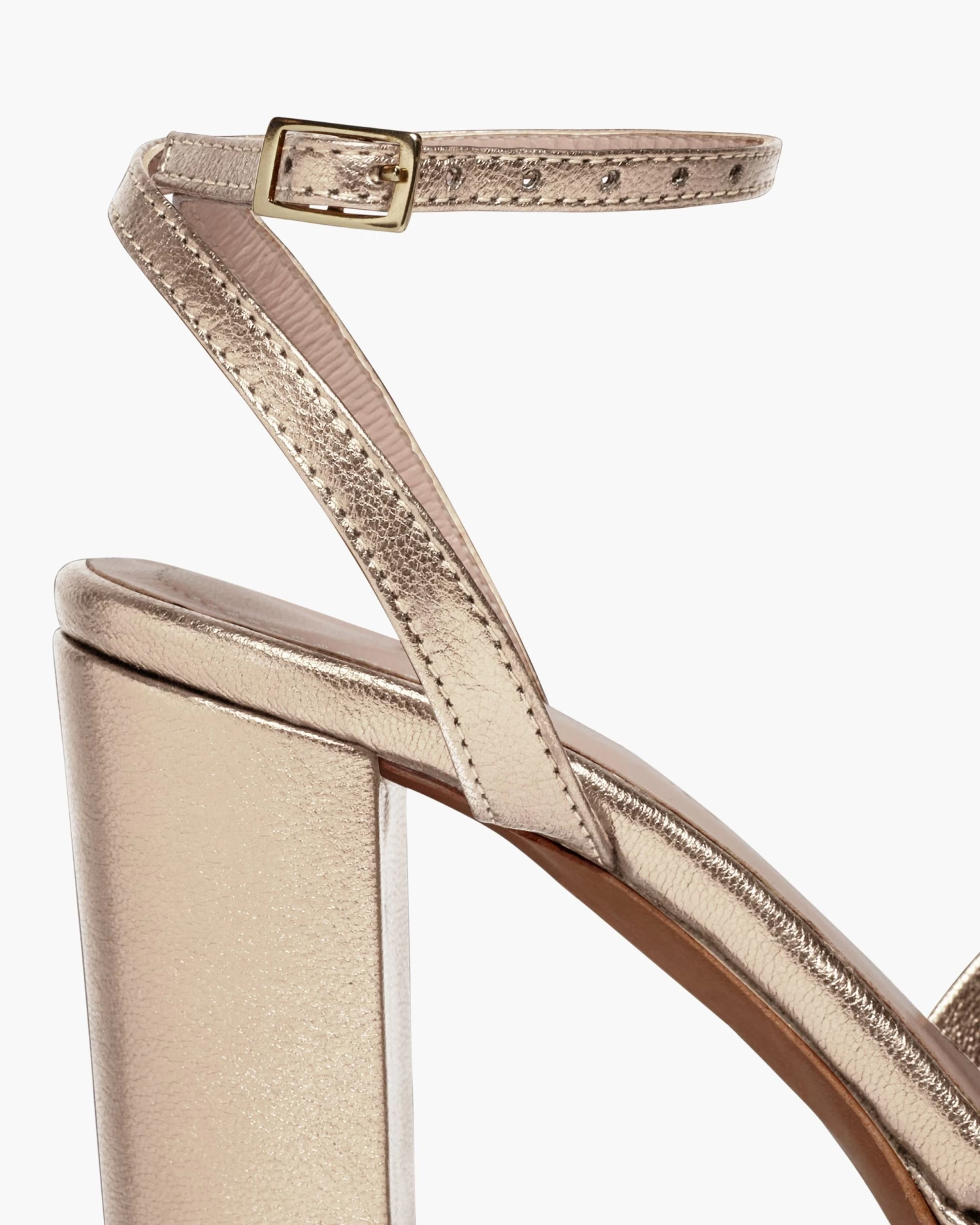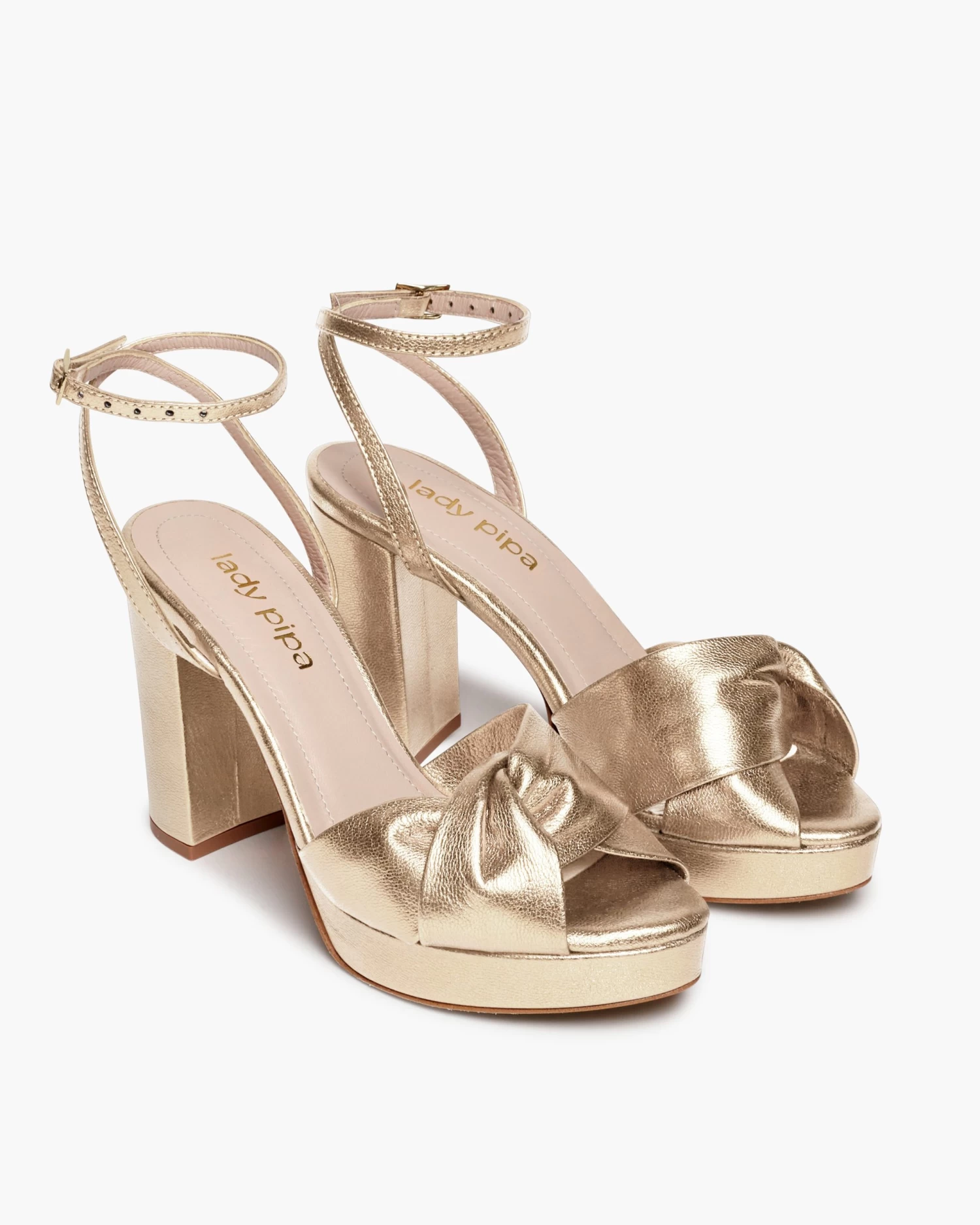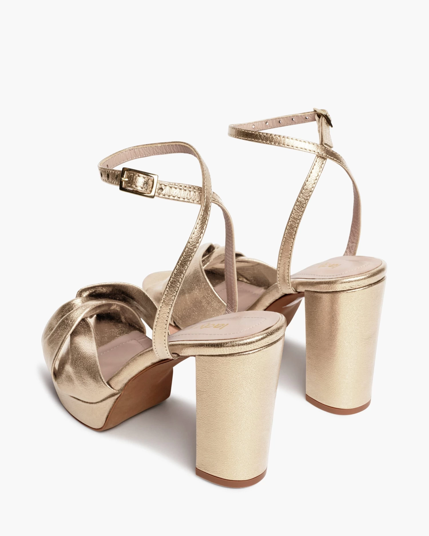 Sandalias de tacón ancho con plataforma y tiras cruzadas en la parte delantera. Cierre de pulsera con hebilla en el tobillo. Tienen la planta muy acolchada para mayor confort.