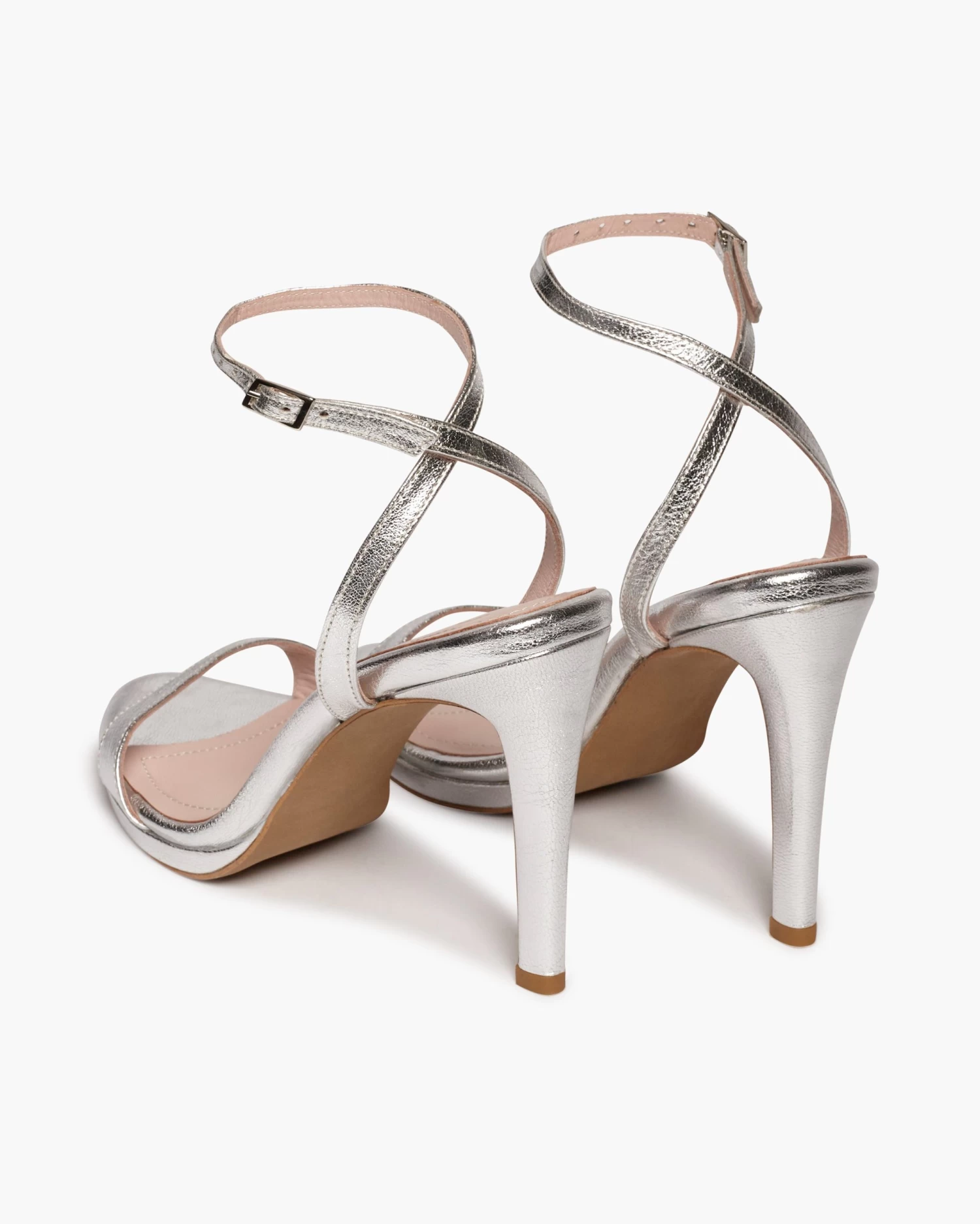 Sandalia de tacón fino y tira fina en la parte delantera. Cierre de pulsera con hebilla en el tobillo. Tiene la planta muy acolchada para mayor confort.