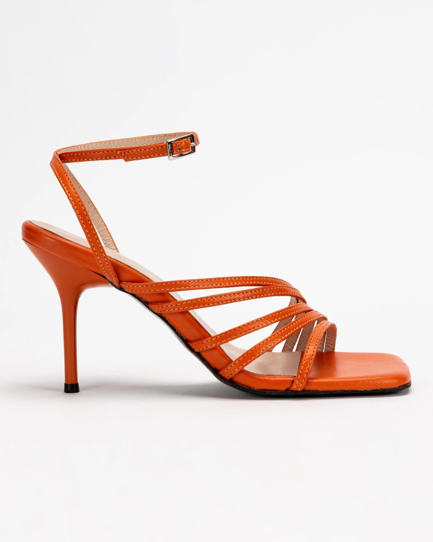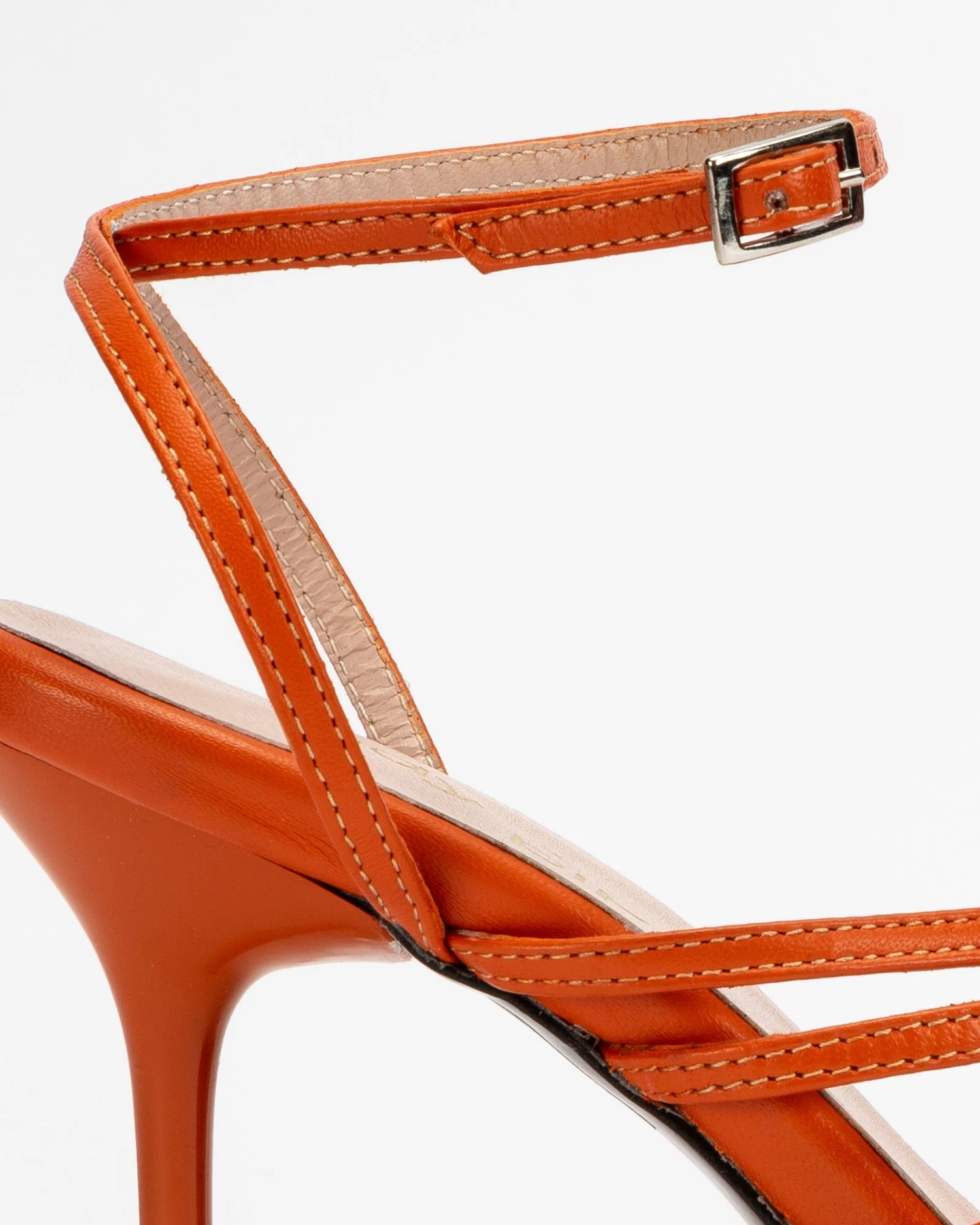 Sandalias de tacón fino de 11cm y tiras finas en la parte delantera. Cierre de pulsera con hebilla en el tobillo. Tienen la planta muy acolchada para mayor confort.