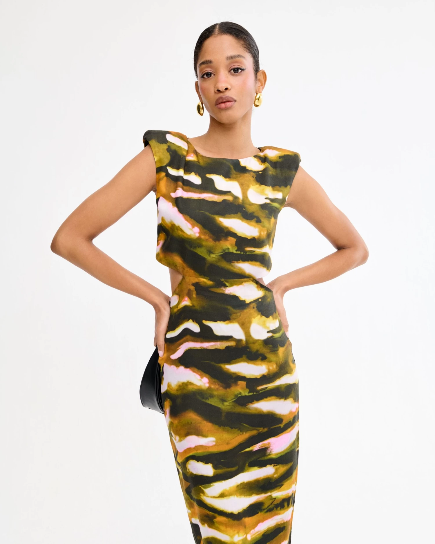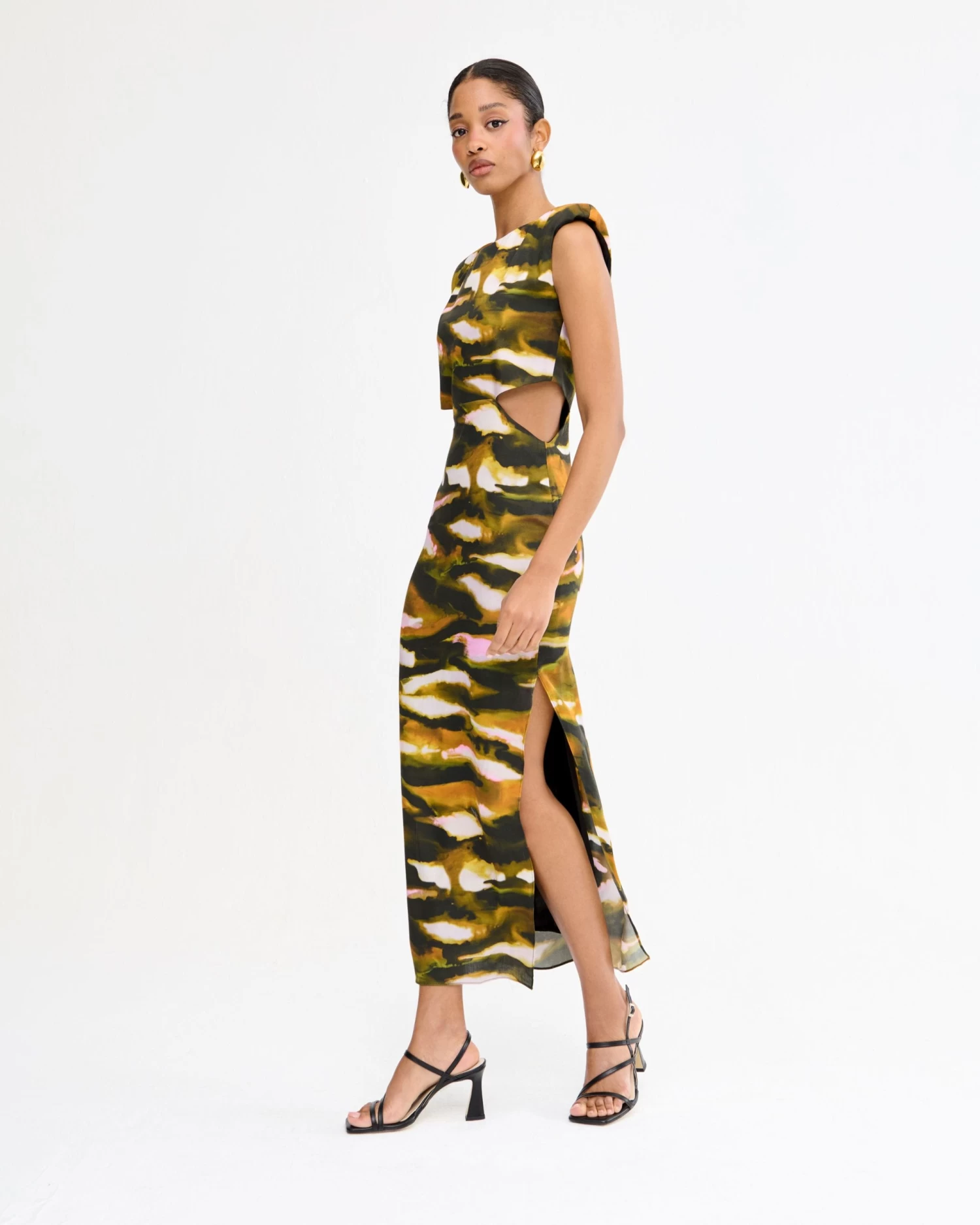 Vestido midi con cut outs y abertura lateral.